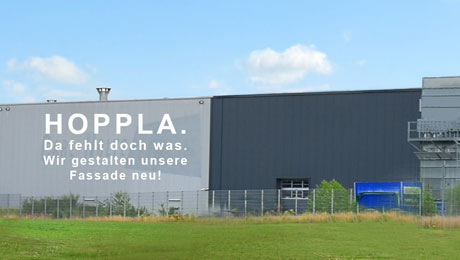 Hoppla - da fehlt das Logo an der Firmenfassade!
