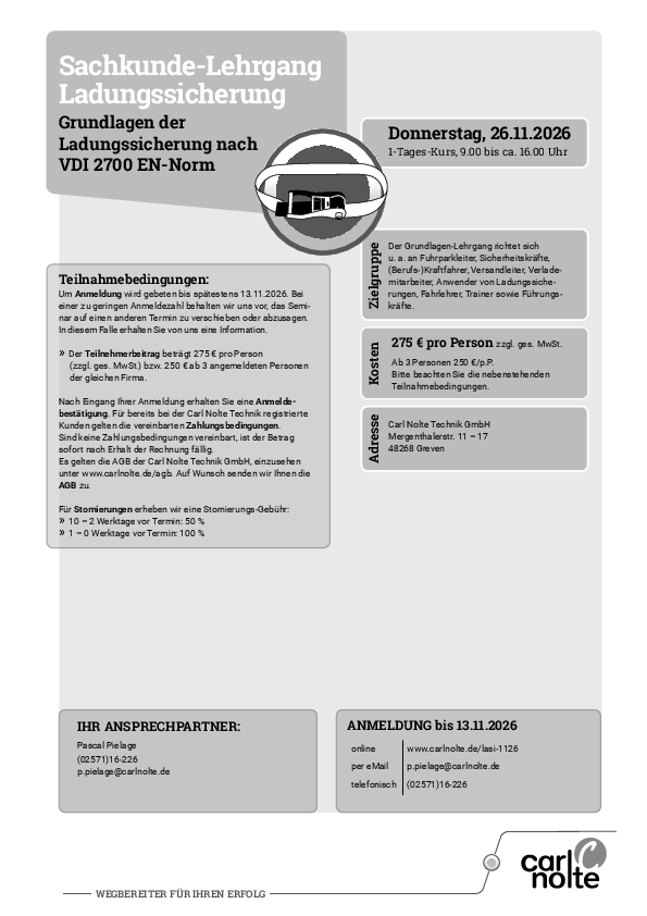Sachkunde-Lehrgang Ladungssicherung November 2026