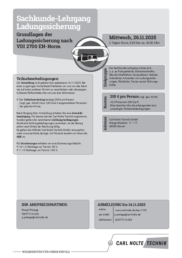 Sachkunde-Lehrgang Ladungssicherung November 2025