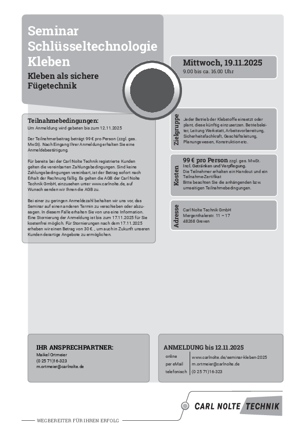 Seminar Schlüsseltechnologie Kleben – Kleben als sichere Fügetechnik